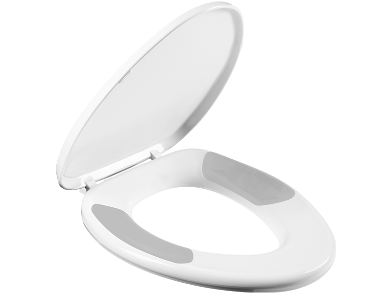 Asiento de plástico, alargado, frente cerrado con tapa.